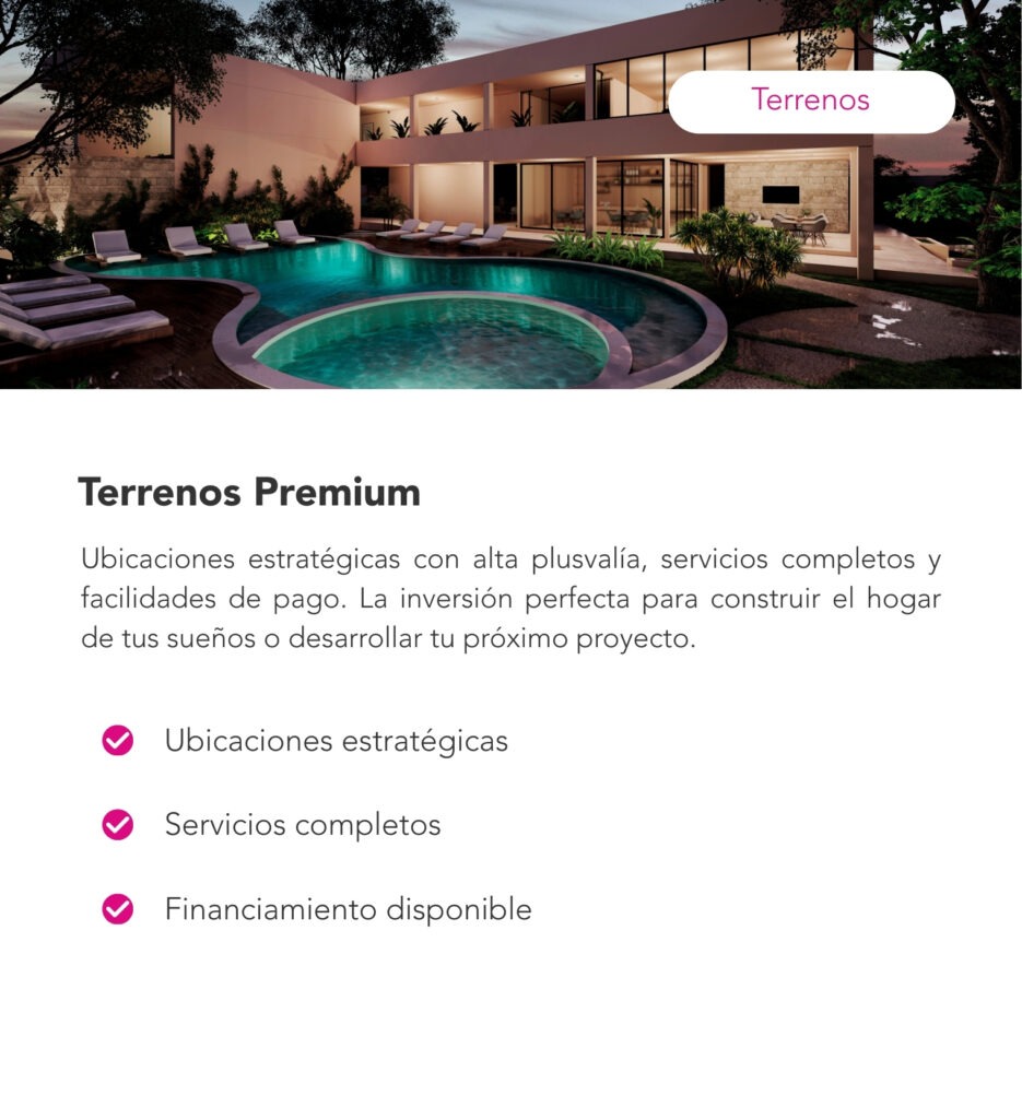 Conoce de primera mano nuestros desarrollos más recientes: terrenos en ubicaciones premium y departamentos modernos diseñados para tu estilo de vida.